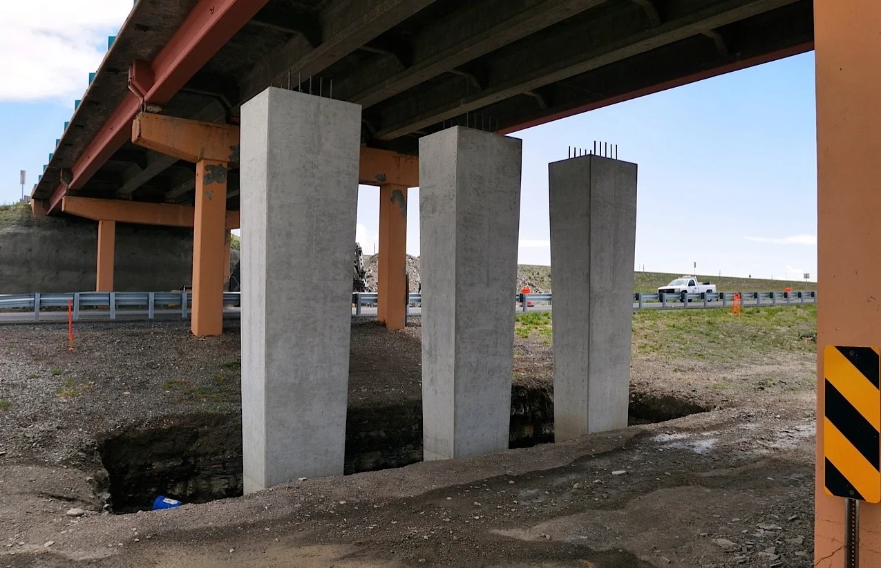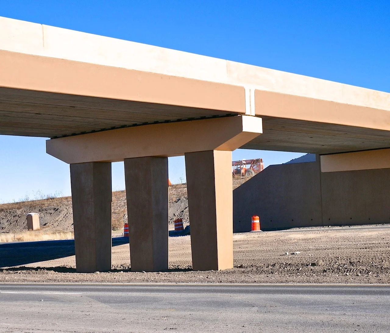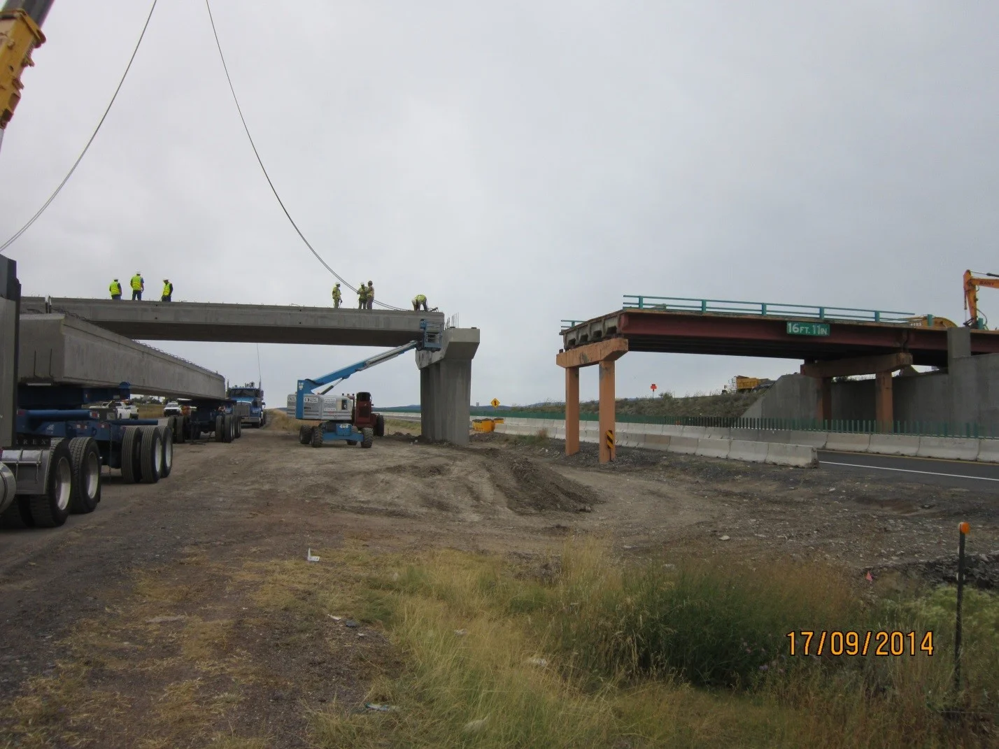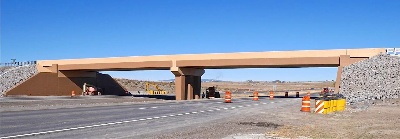 QPEC was involved with the conceptual, preliminary, final design and construction services of the interchange over I-25 in Las Vegas, New Mexico. This new bridge had to be designed and built on the existing alignment using ABC (Accelerated Bridge Construction) methods to reduce long traffic detours and save motorists thousands of miles and many hours of driving time around the construction project. First, the substructure elements were constructed under the existing bridge while it remained in service. Afterwards, the removal of the existing bridge and the installation of the new superstructure would only take 45 days. Due to the requirement of maintaining the final grade, as well as the same reduced vertical clearance, the most suitable precast element for the superstructure were prestressed concrete box girders. These girders would allow one intermediate bridge support and accommodate the new abutments close to the existing bridge abutments. During the excavation of the new abutment foundation, it was required to protect the existing abutments with retaining earth elements. For this purpose, a top down soil nailing excavation method was performed. Per recommendation of the geotechnical engineer, the foundation had to be on piles. Drilled shaft foundations are typically used throughout the state, but the equipment used for drilled shaft construction could not fit under the bridge. For this reason, micro piles were selected. The bridge foundation, the abutment stems and the pier columns consist of cast in place concrete. The rest of the substructure components are precast elements.