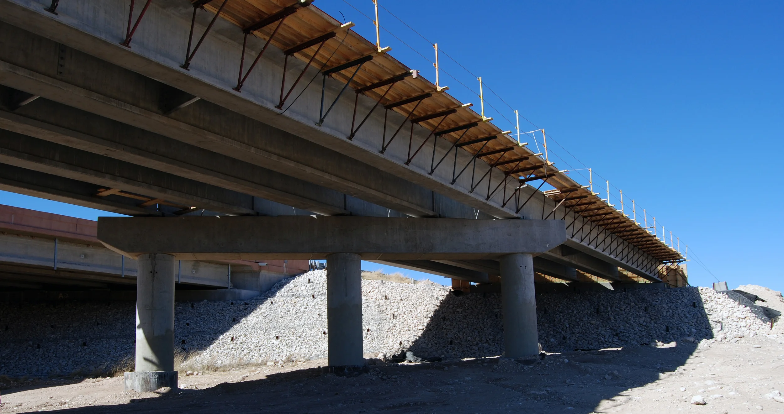 New two-lane bridge built adjacent to existing bridge.